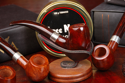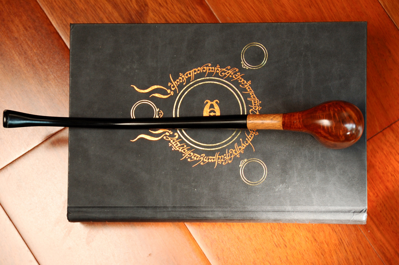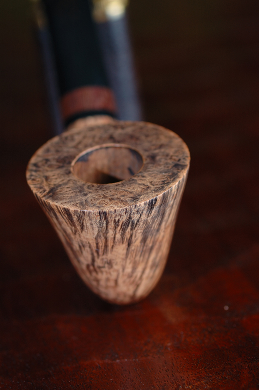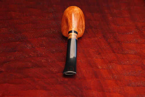 Description: This is a very short and stubby nosewarmer with a briar insert. This was made for the pipemakersforum pipe trade.