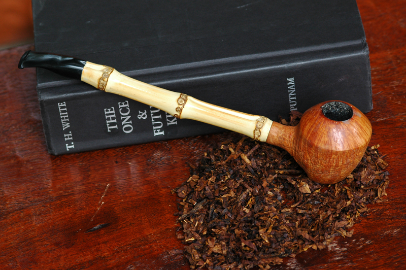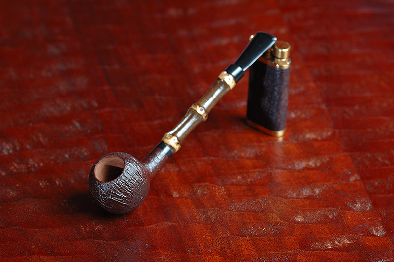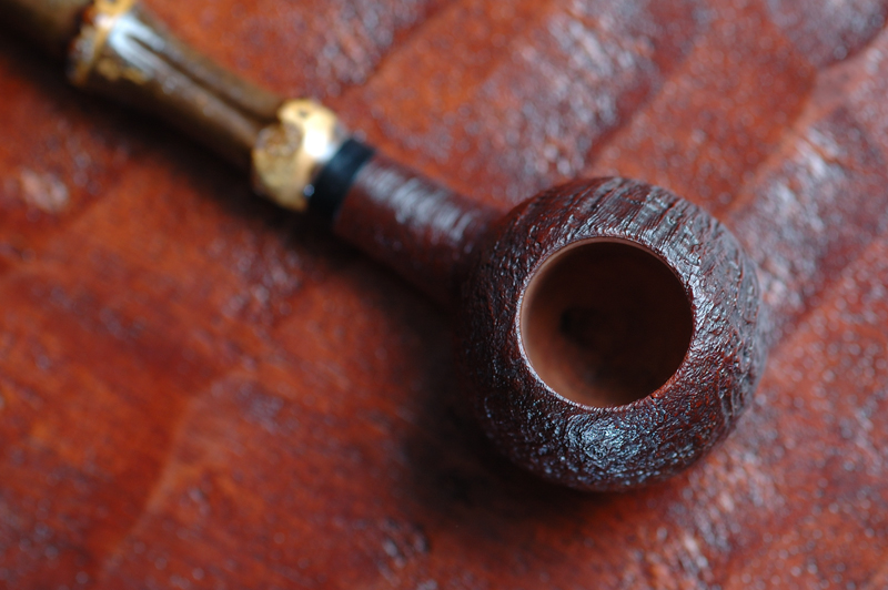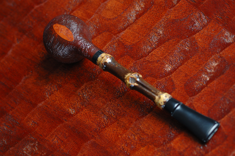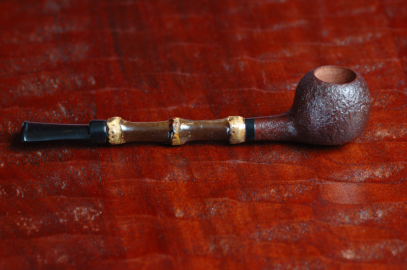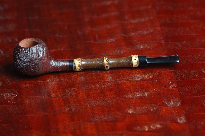 Description: This is a very small bamboo shanked pipe. The dark color really makes the bamboo knuckles "pop".